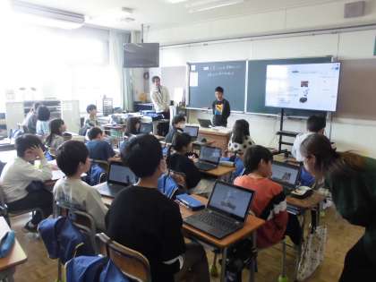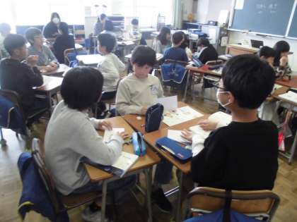 5年生は、国語科の学習でした。自分の名前を使った自己紹介や、秘密の言葉を自然と口にするようにグループでの対話をしました。
