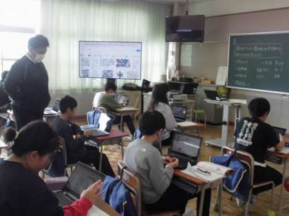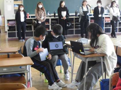 6年生は、算数の学習でした。身の周りにから線対称や点対称の形をしたものをクラスのみんなに紹介しました。