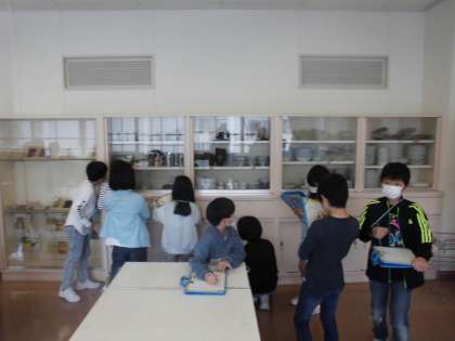 5年生の1時間目は、家庭科の学習でした。家庭科室にはどんなものがあるのか見付け、使用するときに気を付けることを考えました。