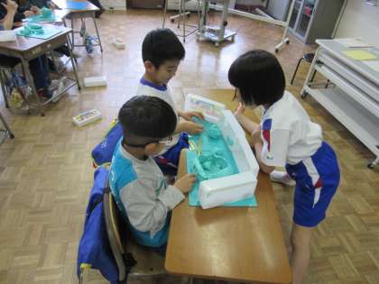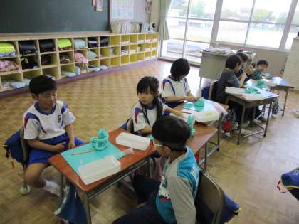 2年生は図画工作科で粘土を使って製作をしていました。ペア・グループの友達と話しながらつくることで、より想像を広げて楽しい作品ができました。つるつるやでこぼこなど、粘土を手触りも楽しんでいました。