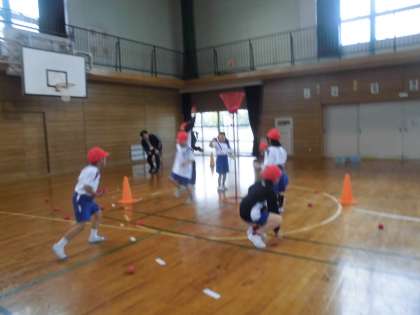 1・2・3年生の3時間目は、運動会の練習でした。今日はダンスの途中に実際に玉入れをしました。かごに玉が入るよう、どの団も一生懸命に取り組んでいました。