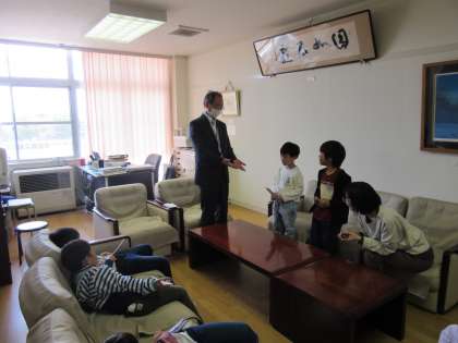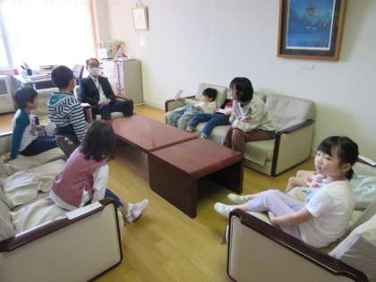 1年生は生活科で校長室に行きました。校長先生に「好きな給食何ですか」「好きな色は何ですか」等質問をしたり、自己紹介をして名刺を渡したりしました。校長室のふかふかのソファが気に入った様子の1年生でした。