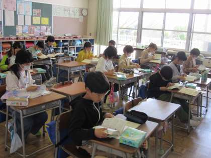 4年生は、国語科で漢字辞典を使って漢字探しをしていました。部首さくいんを使って、先生が提示した漢字を上手に見付けていました。