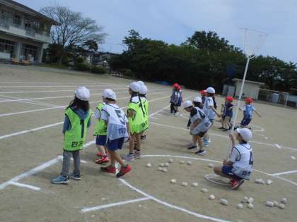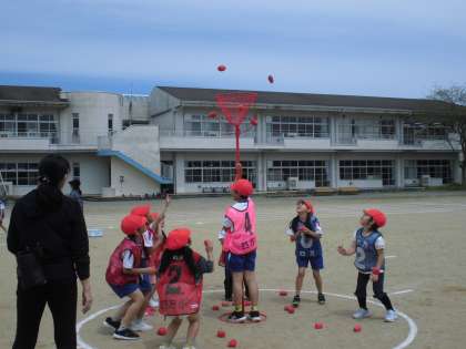 5月15日(水)1、2、3年生 今日の授業風景(ダンス玉入れ)