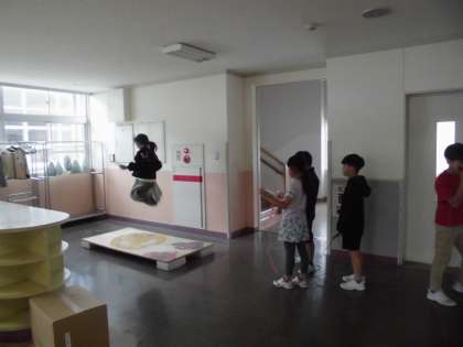 4年生は、登校後、縄跳びを頑張っています。ジャンピングボードを使って二重跳びに挑戦している4年生が多いです。