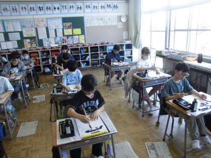 4年生の1時間目は、書写の学習でした。上下の部分の組み立てに気を付けて、「雲」の字を練習しました。とても集中して取り組んでいました。