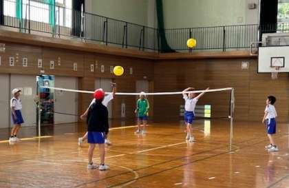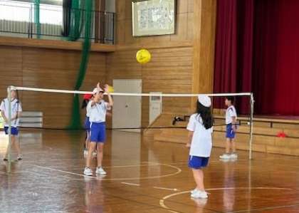 6年生は体育科でビーチバレーボールの学習が始まりました。うまく相手にパスができるよう、相手コートに入れられるよう、ペアで練習をしていました。