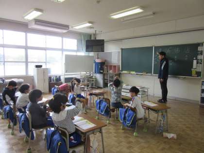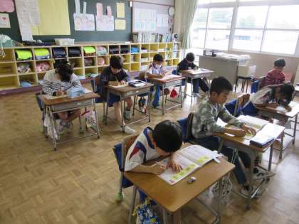 2年生は、漢字の学習をしてました。先生と一緒に指でなぞり書きをしたり、丁寧に描く練習をしたりしていました。