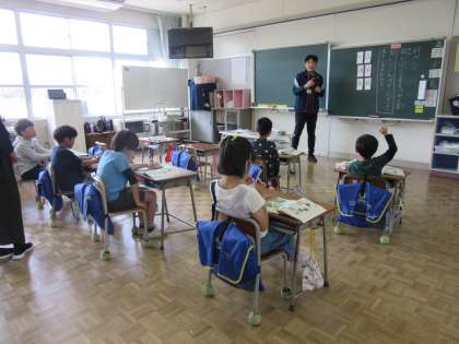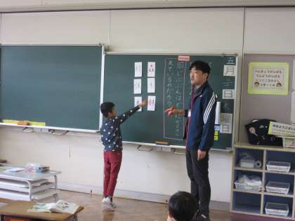 2年生は国語科で、「なかまのかん字」の学習をしていました。森・木・村・休等の漢字にすべて「木」の字が入っていることに気付きました。「森には木がある」「村にも木があったのかな」「木で休む人がいるから『木』がつているのかな」等、漢字の意味についても考えました。