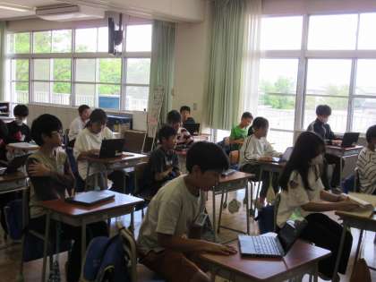 6年生は総合的な学習の時間で四方について調べます。四方の歴史、防災、産業等について自分で課題をもち、調べ学習を進める中で、地域への理解と愛着を深めてもらいたいです。