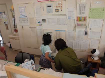 1年生は、生活科の時間に「せんせいとなかよし」を進めています。休み時間になると、先生方に自己紹介やインタビューをして、なかよくなろうとしています。今日は、職員室にいた先生となかよくなる子供もいました。職員室に貼ってあるプリントにも興味津々です。