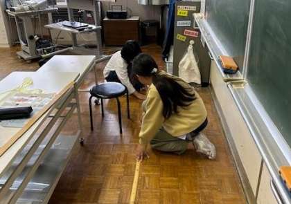 3年生は算数科で、いろいろなものの長さを測りました。測るものによって、1mものさしや巻き尺を使い分け、友達と協力しながら長さを測りました。ものさしのよさ、巻き尺のよさについても考えることができました。