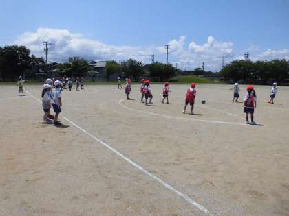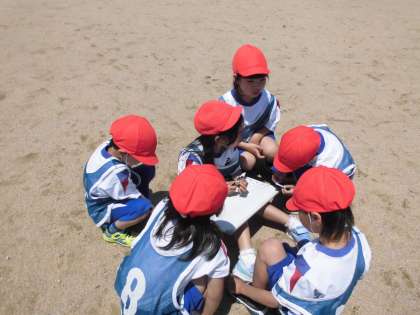 1・2年生の3時間目は、体育の学習でした。今日は、グラウンドでボール蹴りゲームの「たまごわりゲーム」をしました。作戦ボードの周りに集まって、どこに蹴るか、どこを守るか等作戦を立てました。ゲームに生かすことは難しいのですが、チームでよく考えながら学習に取り組みました。