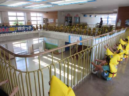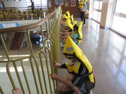 子供たちは放送をしっかり聞き、ライフジャケットを着て、落ち着いて避難できました。園児が避難完了するのを待っている間も、手すりをにぎり静かに待つことができました。