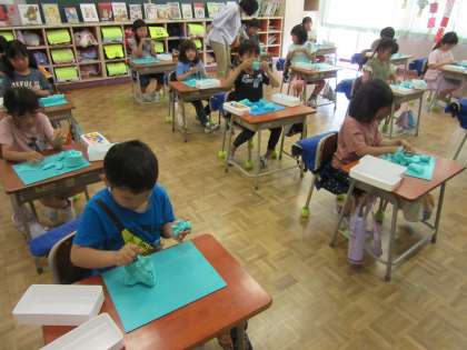 6月11日(火)1年生 今日の授業風景(粘土で動物園)