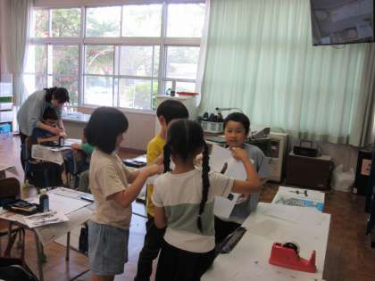 3年生から始まった習字の学習に取り組んでいます。今日は「土」という字を書きました。姿勢と筆の持ち方を意識して、太い線で書くことができました。できた作品を友達と見せ合う姿も見られます。