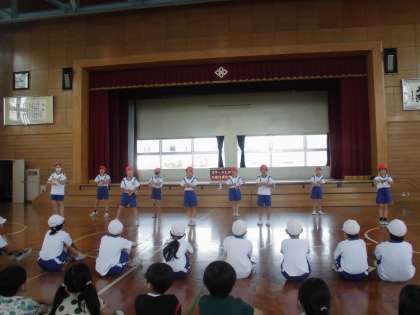 4年生の3時間目は、体育の学習で取り組んでいたダンスの発表会でした。赤団と白団に分かれ、選曲や動き等を考えました。今日は1年生もダンスを観に来て、感想を伝えていました。4年生の息の合ったダンスは、今後も進化していきそうです。