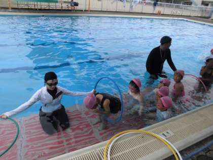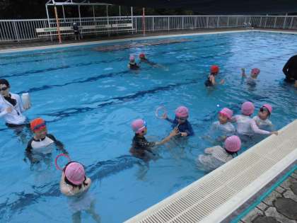 1・2年生の3時間目は、プール学習でした。ペアでもぐって遊んだり、輪っかをくぐったりして、楽しんでいます。次の時間からは、コース別に分かれて、学習していく予定です。