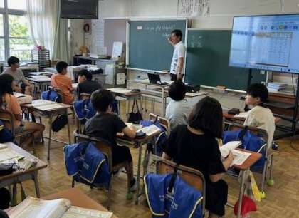 5年生は外国語活動で、普段よく使っている言葉を取り上げて学習していました。「ドッジボール」の「ドッジ」が「よける」という意味であることから、ドッジボールがよけるゲームなのだと知り驚いていました。