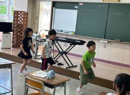 2年生は音楽科の授業で、今日に合わせてダンスをしていました。2つのダンスの内、流れてくる曲に合うダンスがどちらか選び、体を動かしながら曲想を感じ取っていました。