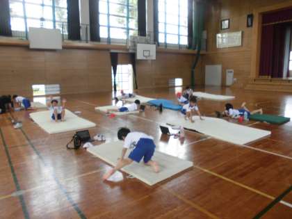 6月24日(月)3年生 今日の授業風景(マット運動)