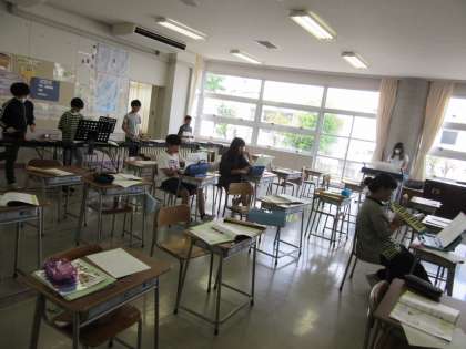 6月26日(水)6年生 今日の授業風景(学級みんなで合奏)