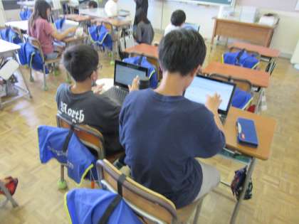 今日は1学期の振り返りを行いました。パソコンを使って、1学期の活動を振り返り、これからどのように生かしていこうかと考えています。よりよい委員会活動を目指してがんばっています。