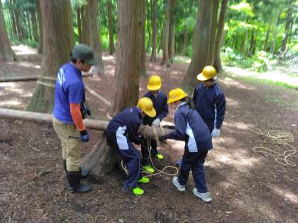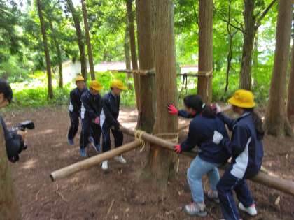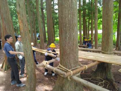 ブランコやシーソー、小屋等、楽しくつくって、遊んでいます。