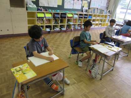 2年生は国語科で、知らせたいことをまとめる学習をしています。今日は、知らせたい場所、もの等についてメモを取っていました。コミュニティーセンターやカナヘビ等について、自分の発見をメモしていました。