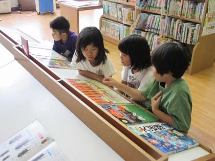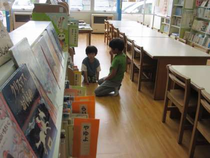 2年生は図書ラウンジで読書をしていました。友達となかよく本を読んだり、読みたい本を探したりしています。