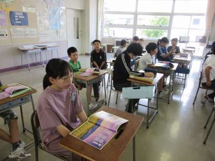 6年生は音楽科で「おぼろ月夜」の歌の学習をしていました。写真や詩から歌の情景を読み取り、歌い方の工夫に生かしていました。