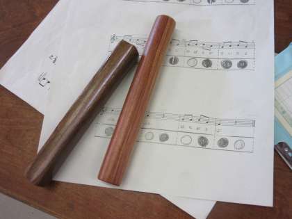 1年生は音楽科の授業で、「ぶんぶんぶん」の曲に合わせてリズムづくりをしていました。つくったリズムを自分で選んだ楽器で、曲に合わせて演奏しました。