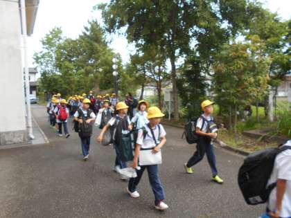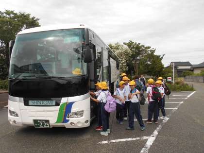 4、5年生が全員、バスに乗り込み、呉羽青少年自然の家に向けて出発しました。