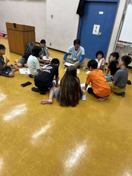班で協力し合って、今日1日の予定を全て終えることができました。明日の活動に向けて、係の振り返りと打合せです。