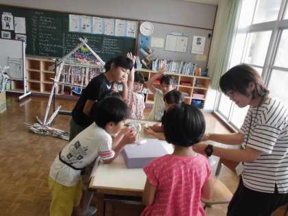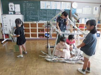 生き生きタイムに、6年生が準備した夏祭りを楽しむ1年生の姿がありました。準備していた手作り品が大人気でした。また、新聞紙でつくった家にも入って楽しんでいました。