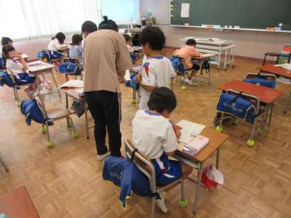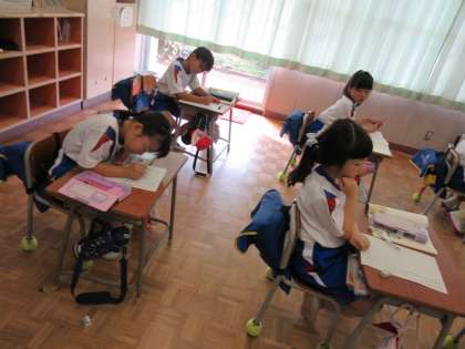 1年生は国語科の学習で、夏休みの思い出を絵と文で表していました。楽しかったこと、がんばったこと等を思い出しながら書いていました。