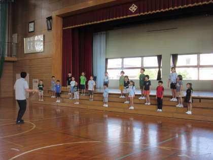2、3年生は音楽会の歌の練習をしていました。振りをつけて、楽しそうに歌っています。今日は初めて体育館で歌いました。隣の人と間が空いて、お互いの声が聞こえづらかったり、広い場所で歌うと声の響きが違ったりする中でも、大きな口を開けて一生懸命歌っていました。