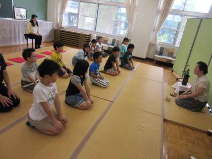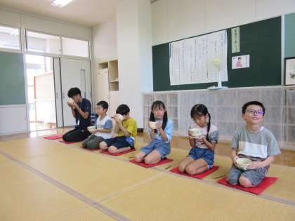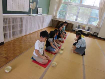 3年生は茶道教室を行いました。まだまだ暑い毎日が続いていますが、静かに心を落ち着けて過ごすと少し暑さが和らぐように感じます。