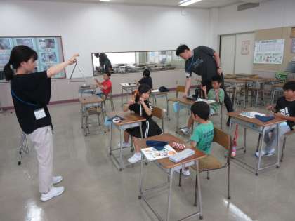 2年生は音楽科で「むしのこえ」の学習をしています。虫の鳴き声を鈴やトライアングルで表現しながら、曲を楽しんでいました。