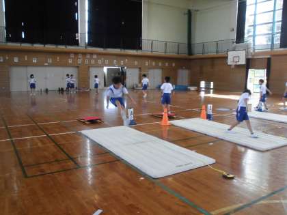 3年生の5時間目は、体育の学習でした。体育館の中も暑かったため、こまめに休憩を取りながら活動しました。リズミカルに助走し、力強くジャンプできるように、5つの練習の場を自分で選びながら練習しています。どんどん記録が伸びてきていて、目標記録を更新する子供も出てきました。