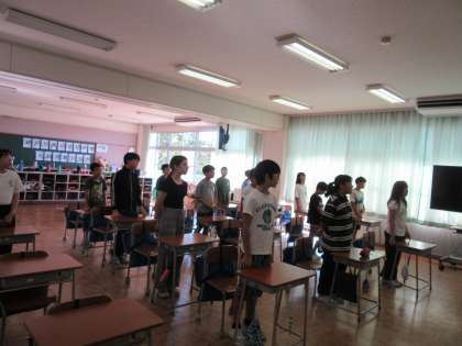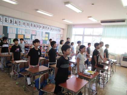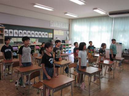 子供たちは朝から学習発表会で歌う全校合唱「みんなの町 四方」を練習しています。しっかり歌詞を覚えた子供たちの元気な歌声が校舎内に響いています。