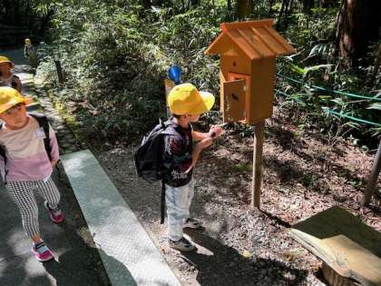 周りの木や草花を見たり、鳥や虫の声に耳を傾けたりと、動物がいない道も楽しみながら歩いています。