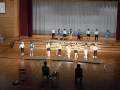 1年生の1時間目に、衣装を着て、学習発表会の練習をしました。今日は、校長先生、教頭先生に演技を見ていただきました。見ている人が楽しくなる演技をしている子供たちがたくさんいました。