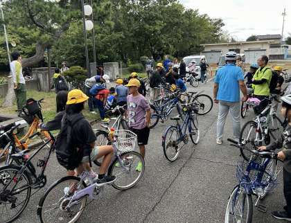 今日は四方防犯スポーツ協会のサイクルイベントを行います。たくさんの子供たち、地域の方々が、集まってきています。