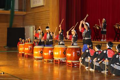 5年生の和太鼓演奏「四方力太鼓〜響〜」から、スタートした学習発表会。今日の演奏はこれまでの中で一番、かけ声も元気で迫力があり、クラスみんなの気持ちが揃っていました。