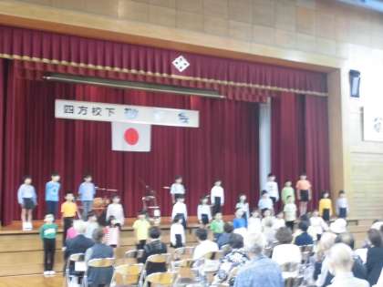 今日は、1〜3年生が敬老会に参加し、合唱「うちゅうじんにあえたら」「太陽のサンバ」を披露しました。敬老会に出席しておられた皆様から、温かい拍手をいただき、やはり四方っ子は地域の皆様に育てていただいていると感じました。