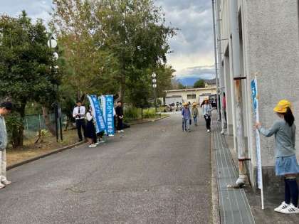 四方小学校卒業の和合中学生も参加しての小中合同挨拶運動を行いました。保護者の方にもご参加いただき、朝から大きな声が学校に響き渡っていました。ご協力いただいた保護者のみなさま、ありがとうございました。小中合同挨拶運動は、明日も行います。