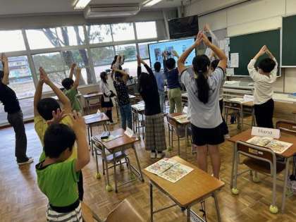 3年生は外国語活動でアルファベットの学習をしています。今日は「YMCA」という英語の曲に合わせて体を動かしながら英語・アルファベットに親しみました。