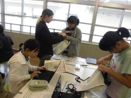 6年生の2時間目は、家庭科の学習でした。ナップザックづくりも仕上げに入る子供たちが多く、友達と協力し合う姿がたくさん見られました。