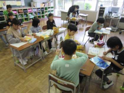 3年生は国語科で、故事成語の学習をしていました。国語辞典を使って意味を調べる活動に、一人で集中して、友達と協力して、と学習の仕方を自分で選んで取り組んでいます。